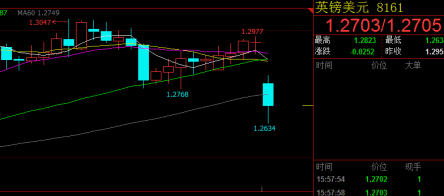 目前,英鎊/美元已經跌到1.27附近,日內大跌一度超過2%;并且觸及了八周以來的新低1.2690。