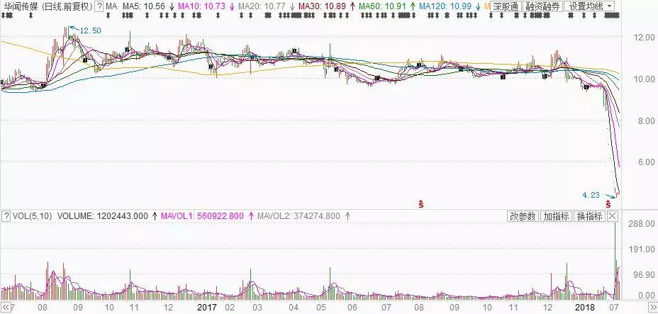 但是,資本市場并不買賬,而是選擇“用腳投票”。7月16日,華聞傳媒復牌直接一字跌停,此后連續6個跌停,股價跌成歷史新低4.23元,與停牌日收盤價8.38元相比,股價幾乎腰斬,6.7萬名股東哭暈在廁所。