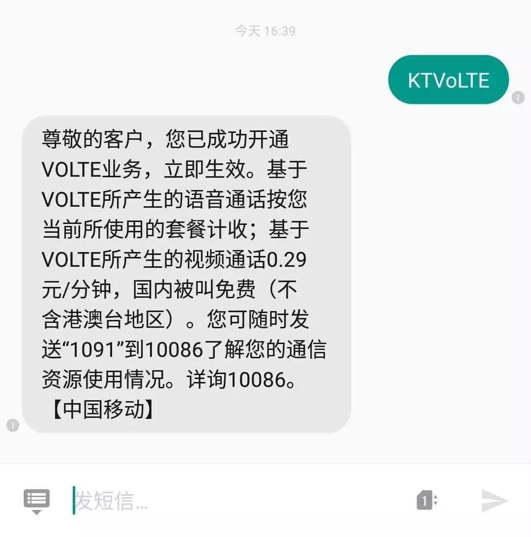移動用戶發送“KTVoLTE”到10086,