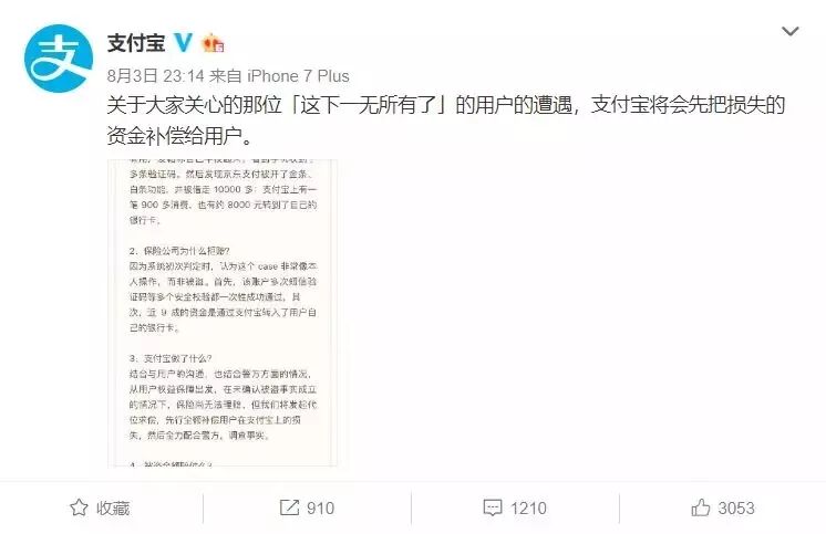 而且,支付寶官方還出面慰問了這位一夜返貧的豆瓣用戶: