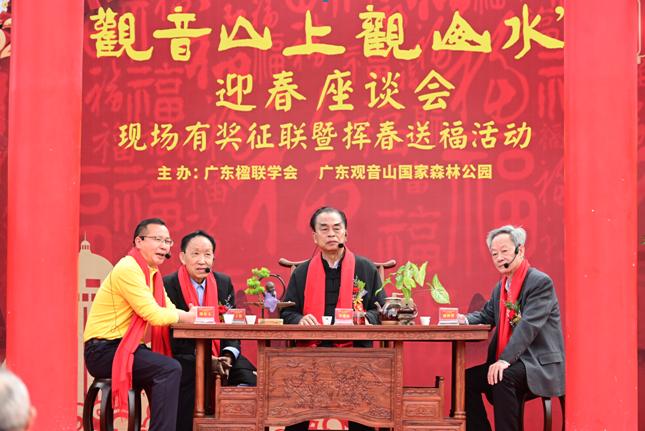在品析“觀音山上觀山水”之余,觀音山景區還推出了有獎征對句活動,廣東楹聯學會會長鄒繼海以“名山對對對名聯”為下聯出句征上聯,自1月10日開始清晨便吸引了近千名“聯友”前來景區一展才情投稿。此外,當天楹聯名家現場揮春送福,為廣大聯友、游客現場送“福”,將福氣帶回家。