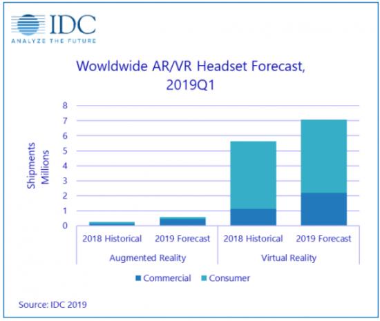 從2018年開(kāi)始,以VR設(shè)備為首的虛擬現(xiàn)實(shí)市場(chǎng)開(kāi)始大幅下滑,即便部分產(chǎn)品收獲了市場(chǎng)驚艷的目光,但也都遲遲難以推動(dòng)市場(chǎng)化進(jìn)程。目前最新的數(shù)據(jù)只有來(lái)自IDC給出的2019年Q1全球AR/VR頭顯出貨130萬(wàn)臺(tái),相比2018年同期增長(zhǎng)27.2%。