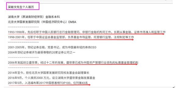 2006年創立盛世景的PE大佬吳敏文,是PE行業低調的名人,多年任職于央行和證監會基金部,后曾于2001年擔任世紀證券總裁,成為當時中國最年輕的券商CEO。