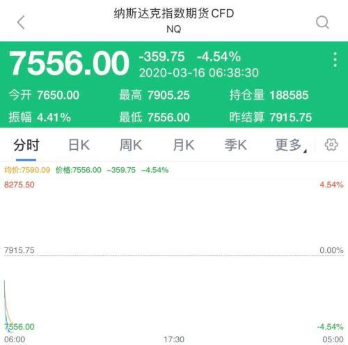 美股三大股指期貨,有熔斷了。。。道瓊斯工業(yè)平均指數(shù)期貨下跌超過1000點,跌幅達到5%限制點,觸發(fā)跌停。