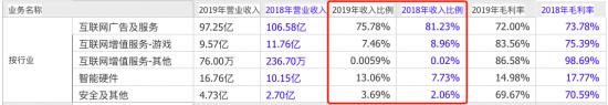 然而,橫向對比來看,360的互聯(lián)網(wǎng)收入?yún)s出現(xiàn)了份額、利潤雙降的局面。