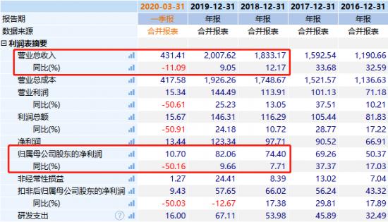 報告顯示,2019年,海爾智家營收2007.62億元,同比增長9.05%,歸母凈利潤82.06億元,同比增長9.66%。2020年Q1,營收431.41億元,同比下降11.09%,歸母凈利潤10.7億元,業績雖然有所下滑,但是在疫情下整體表現優于行業。