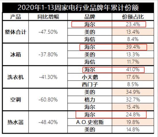 具體來看,在冰箱、洗衣機、熱水器等領域海爾的份額都是第一名,本質上來說這是長期口碑和創新力的沉淀,在危機時刻體現了良好的抗風險能力。