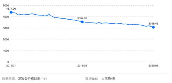 以42寸液晶電視價格為例,從2012年到2020年,價格持續下跌。