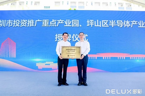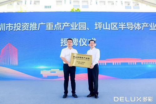 坪山區(qū)副區(qū)長(zhǎng)陳華平為多彩科技園授“坪山半導(dǎo)體產(chǎn)業(yè)園”牌匾。