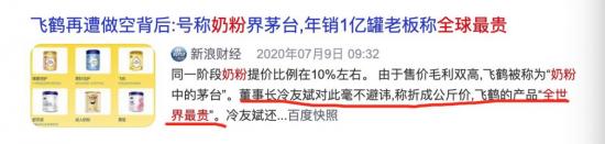 其中,飛鶴這個品牌,即使是還沒有生育的年輕人,也應該看過其與國際巨星章子怡合作的廣告。并且,飛鶴身上有很多稱呼:奶粉界的茅臺、國粉之光、全世界最貴的奶粉......