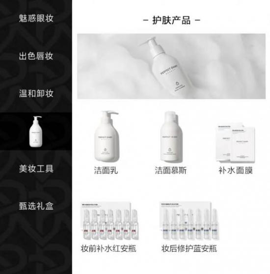 再來看護膚線。包含潔面產品在內,完美日記目前在售的護膚品僅有五款,分別是潔面乳、潔面慕斯、補水面膜、妝前補水紅安瓶、妝后修護藍安瓶。