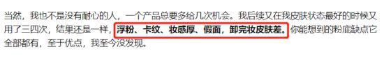 而靠網紅種草火起來的完美日記粉底液,不論是從成分還是從使用感上,都無法與大牌相匹敵,其賣得最好的粉底液“小黑蓋”,更是經常被詬病“效果差”: