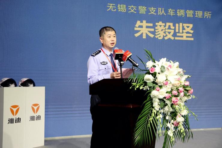無錫交警支隊車輛管理所朱毅堅科長為雅迪717騎行節(jié)致辭