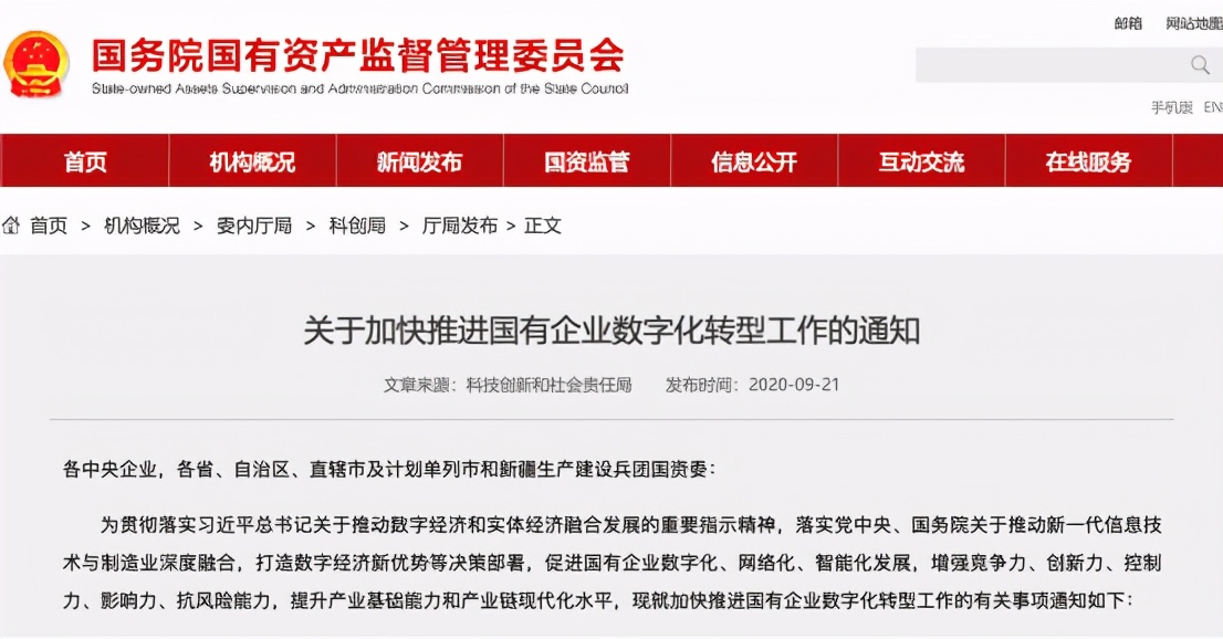 在《關(guān)于加快推進(jìn)國(guó)有企業(yè)數(shù)字化轉(zhuǎn)型工作的通知》指出,國(guó)有企業(yè)要“探索構(gòu)建適應(yīng)企業(yè)業(yè)務(wù)特點(diǎn)和發(fā)展需求的‘?dāng)?shù)據(jù)中臺(tái)’‘業(yè)務(wù)中臺(tái)’等新型IT架構(gòu)模式”,并且國(guó)有企業(yè)要積極籌建其“新一代數(shù)字技術(shù)基礎(chǔ)設(shè)施”“數(shù)字技術(shù)賦能平臺(tái)”“企業(yè)內(nèi)網(wǎng)”,為國(guó)民經(jīng)濟(jì)其他企業(yè)表率和引導(dǎo)。