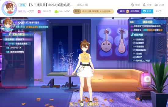 AI艾靈在B站直播間接受彈幕點歌,和粉絲互動