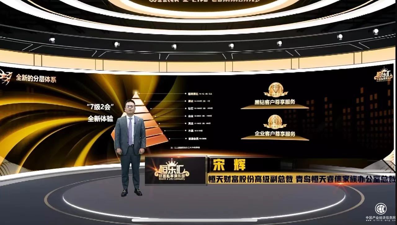 恒天財富股份高級副總裁、青島恒天睿信家族辦公室總裁宋輝以《金煜恒享,樂匯登場》為主題,發表精彩演講。他從服務模式到服務過程,從會員體系到分層服務,對恒樂匯財富私享俱樂部進行了全方位地闡釋。