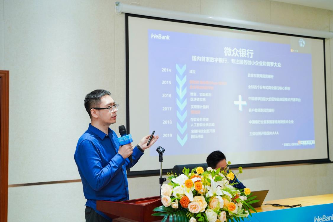 活動現場,微眾銀行科創金融相關負責人詳細宣講了微眾銀行為科創企業打造的專屬科創金融服務。微眾銀行是國內首家民營銀行、國際領先的數字銀行,堅守“讓金融普惠大眾”的使命,為小微企業提供差異化、有特色、優質便捷的金融服務。圍繞國家科技創新的路線圖和產業鏈布局,微眾銀行通過打造以數字科技為驅動的科創金融綜合服務方案,滿足科技創新及戰略新興產業的小微企業全生命周期服務需求。其中,“微業貸科創貸款”產品具有無需抵質押、無需線下開戶、全天候、智能化、額度高等特色,能夠及時、有力地滿足科創企業的資金需求。微業貸科創金融已經在全國20個省及直轄市、200多個地級市開展業務,吸引近23萬戶科創企業前來申請,已申請企業占所在地區科創企業總數的比例達15%,在當地國家高新技術企業的滲透率超21%,累計授信超1800億元。