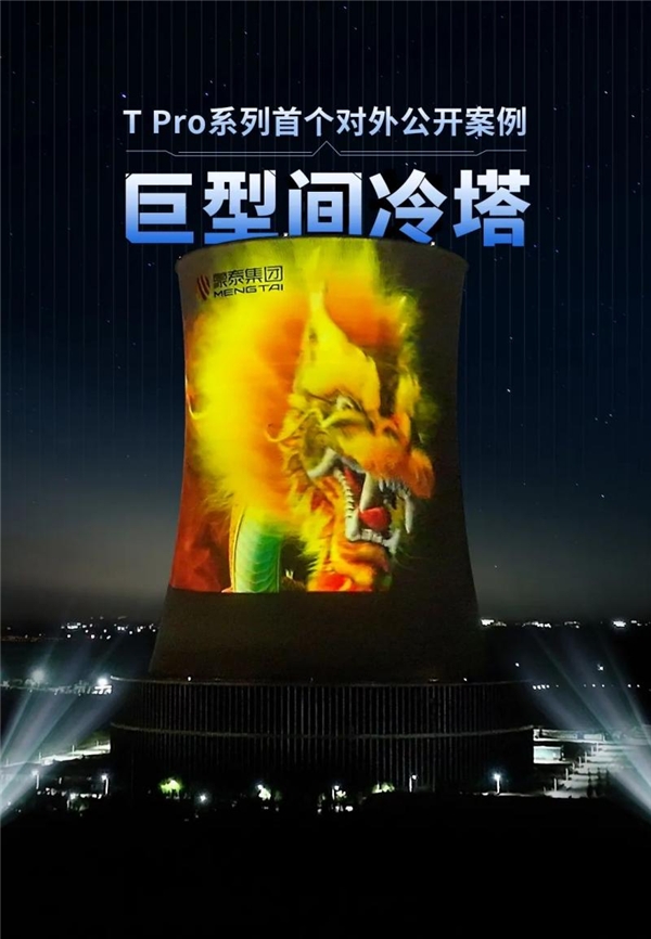 2023年,國內(nèi)首個(gè)大型間冷塔項(xiàng)目《蒙泰間冷塔光影秀》由T Pro系列3DLP高亮工程投影機(jī)打造,塔身投射多種類型主題畫面,讓21000余平米巨幕投影閃耀鄂爾多斯。