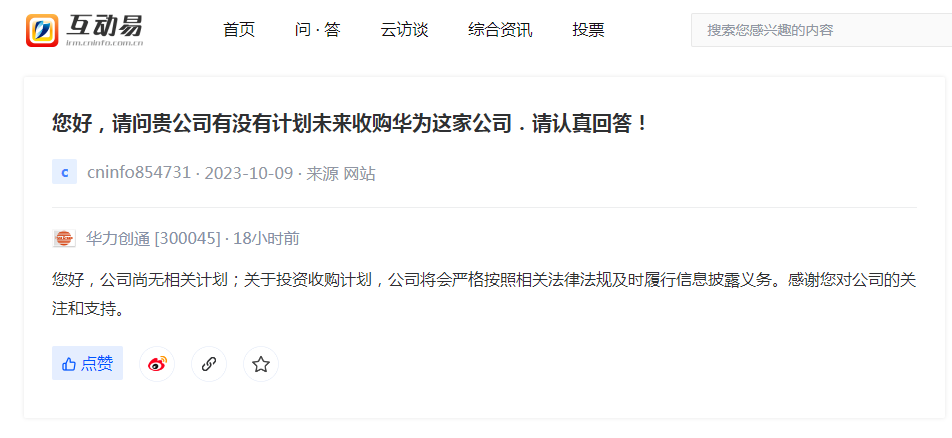 更有投資者的提問離了大譜:“有沒有計劃未來收購華為?請認真回答!”