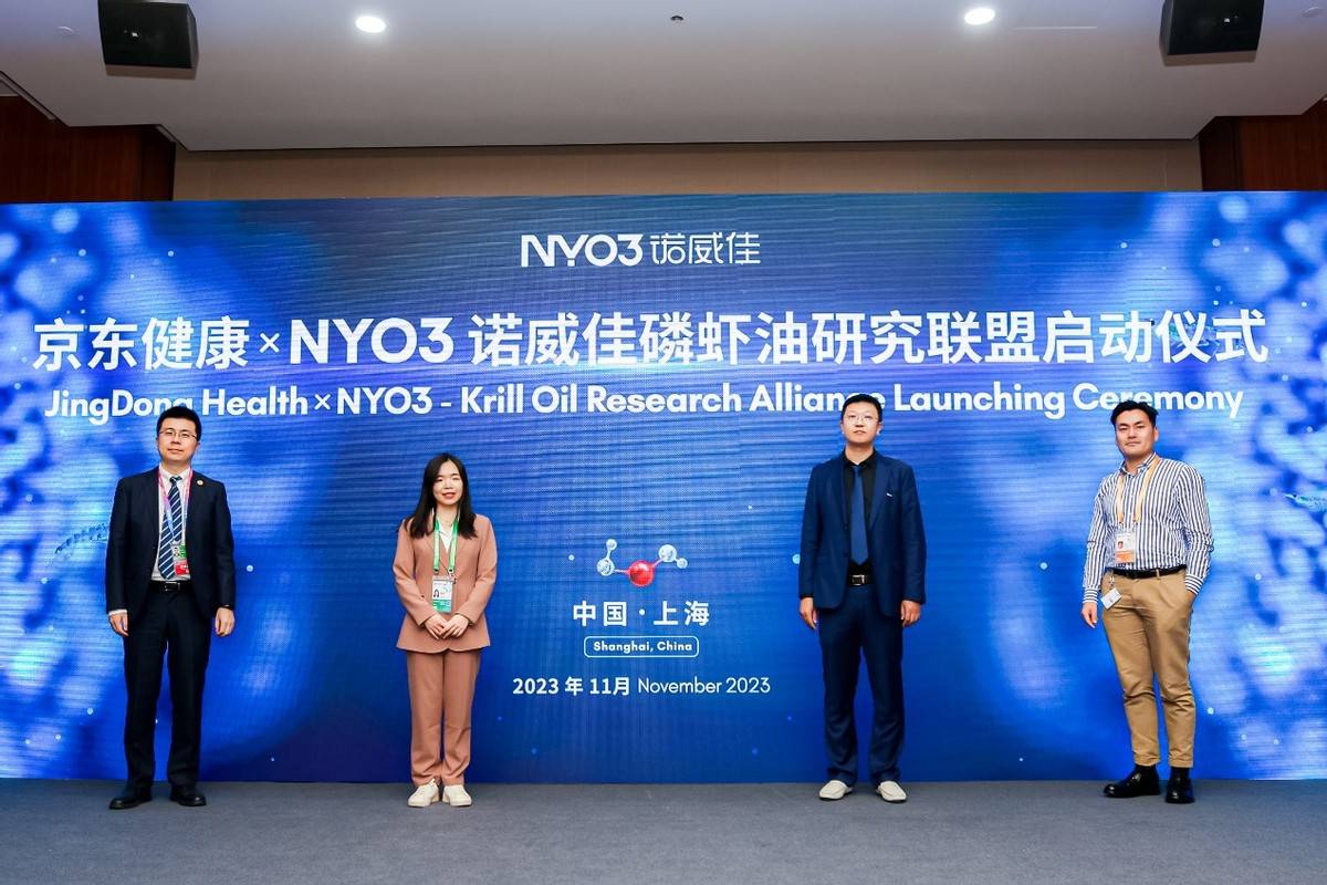 活動現場,京東健康和NYO3諾威佳攜手,發起一次平臺與品牌的聯合實踐——組建磷蝦油研究聯盟,并發布行業白皮書,雙方優勢資源互補深入抗衰營養領域的研究與探索。