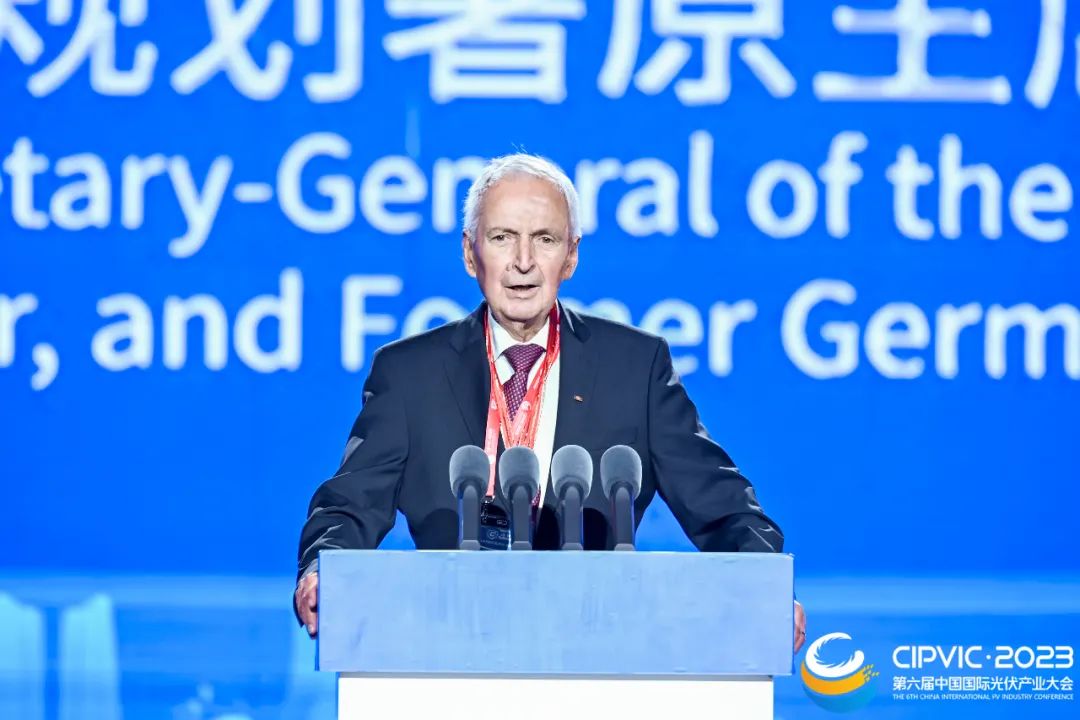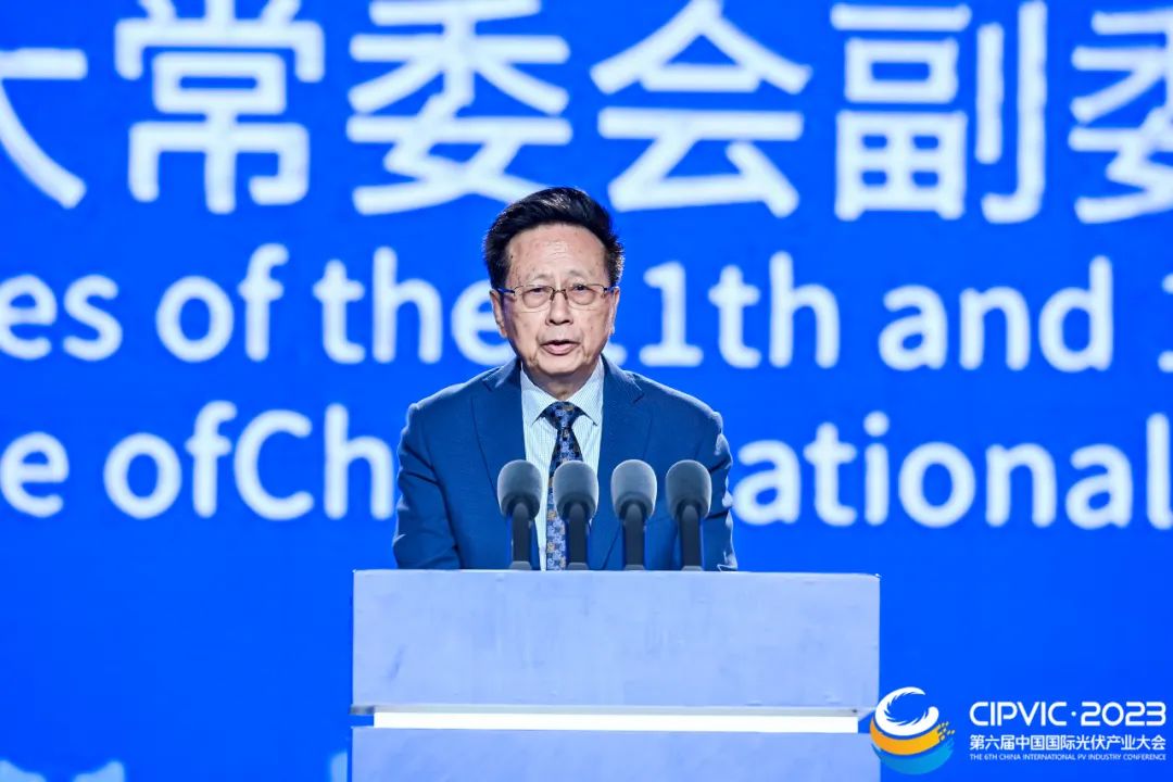 四川省工商聯主席、四川省商會會長唐燕致辭表示,四川,是清潔能源大省,在服務和保障國家能源安全大局中具有重要地位。四川,資源豐富、基礎深厚、政策有力。吸引了一批光伏重大項目,在川落地投產。全球前10強光伏企業,已有5戶落戶四川。通威集團作為四川本土民營企業,今年躋身世界500強,填補了四川制造業世界500強企業空白,體現了民營經濟“拔節向上”的蓬勃活力,彰顯了民營企業推進中國式現代化的生動實踐。在劉漢元主席帶領下,通威深耕光伏產業,持續加大在川投資。旗下通威太陽能發展十年來,產能規模不斷擴大,全球市場占有率持續提升,為四川光伏產業集群發展作出了積極貢獻。聯合國原副秘書長、環境規劃署原主席、德國環境部原部長 克勞斯·托普弗致辭聯合國原副秘書長、環境規劃署原主席、德國環境部原部長 克勞斯·托普弗致辭表示,氣候變化是當今全球面臨的重大挑戰之一。實現碳中和是一場廣泛而深刻的經濟社會系統性變革,將推動世界經濟從能源資源依賴型逐步走向能源技術依賴型。在這個過程中,我們感受到了中國政府推動綠色低碳發展的決心,也感受到了中國企業高效的行動力。今年,通威集團進入了《財富》世界500強,成為全球光伏行業首家世界500強企業。今年,通威太陽能也迎來了成立第十年,目前通威太陽能電池片出貨量連續六年位居全球第一,產品遍及全球5大洲30多個國家和地區,全球市占率達15%。祝賀通威!祝賀通威太陽能!第十一屆、十二屆全國人大常委會副委員長、民建中央原主席陳昌智致辭第十一屆、十二屆全國人大常委會副委員長、民建中央原主席陳昌智致辭表示,在“雙碳”戰略引領下,我國企業發展觀念、產業體系、社會用能發生巨大改變。尤其是光伏產業迅速崛起,實現了從無到有、由弱到強的偉大跨越,成為全球光伏市場的領軍者。中國光伏產業制造端產量、裝機規模、出口額、產值均呈現大幅增長,創造了新紀錄。在我國“雙碳”目標進入爬坡過坎的關鍵期,我們迎來了第六屆中國國際光伏產業大會,正當其時。大會以“雙碳新時代 綠色新未來”主題,匯聚了國內及國際權威專家、龍頭企業,希望大家聚焦行業高質量發展的痛點難點,勇當新能源產業創新發展的排頭兵,激發創新活力,開創光伏發展的新時代!