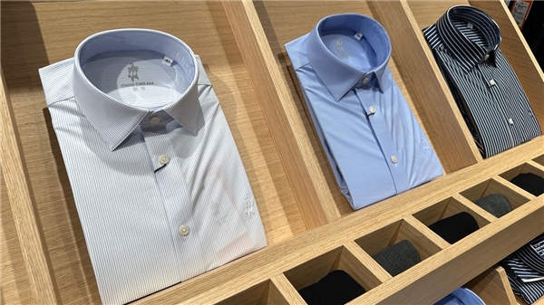 一方面尊重傳統商務男裝門店慣用的金色、大理石紋理等元素和調性傳統,亦“因地制宜”產品故事化思維重新設計了每一家門店,每一處貨架的宣傳海報都像是一張故事的插圖,不同設計風格的服裝品類都對應著一句深入人心的洞察文案“男人值得擁有一件高彈襯衫,那是王公般的享受”“你說的沒說的,AI都懂你”既能通過服裝產品覆蓋多元生活場景,又能情景化故事化和潮流感的帶給消費者情感價值體驗上的耳目一新享受,完全刷新了大家對商務男裝門店的固有認知。