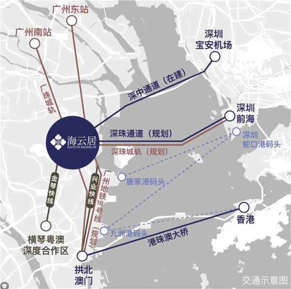 格力地產旗下多個房產項目是粵港澳大灣區融合規劃疊加城際、區域交通互聯的直接受益者。以格力海云居項目為例,該項目位于具潛力的灣區戰略區域——高新科創北圍,深中通道、深珠通道圍繞,依托片區“四橫五縱”的多維立體路網,交通體系通達灣區。