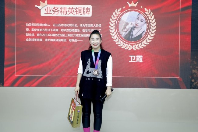 減肥項目類業務精英銅牌——衛霞:她是資深圍美辣媽人,在山西市場叱咤風云,成為老圍美人的楷模,即使在地方經濟下滑期,她依然勵精圖治,在老市場做出了新業績,她在2023年減肥進貨量上榮獲了第三屆圍美白手創富榜業務精英銅牌。