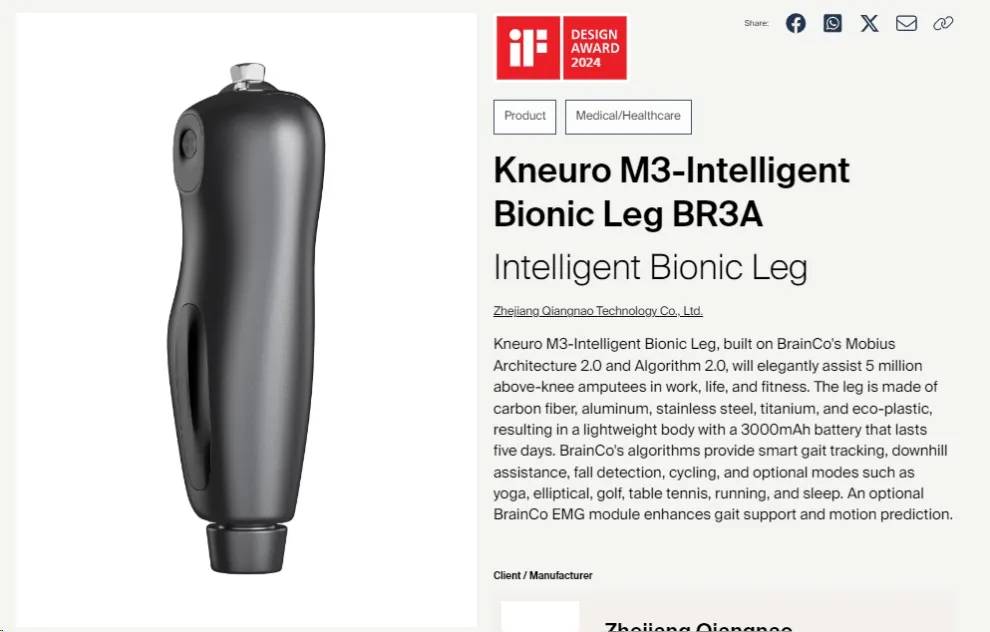 3月14日,被譽(yù)為設(shè)計(jì)界“奧斯卡”的德國iF設(shè)計(jì)獎公布了2024年度獲獎名單,BrainCo強(qiáng)腦科技的智能仿生腿、仰憩助眠舒壓系統(tǒng)、深海豚腦機(jī)智能安睡儀、腦科學(xué)人工智能機(jī)械手等7個產(chǎn)品榮獲2024iF設(shè)計(jì)獎。