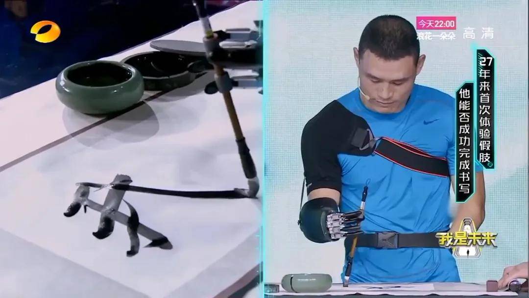 2017年,他收到湖南衛視《我是未來》節目的邀請,節目組在電話里跟他說:“有一款很好的機械手,想讓你來試試?!本瓦@樣,他來到湖南衛視的演播廳。