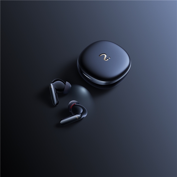 訊飛會議耳機 Pro 2外觀設計盡顯創新、典雅商務范,產品延續了經典的滑蓋設計,充電盒采用PPG大師漆的,搭配夜影黑、幻影銀、午夜藍三種未來科幻感配色,視覺效果沉穩大氣,手感更是親膚細膩。正面的懸浮鏤空全透效果logo,隨著光線視角的變化,呈現出獨特的閃爍質感,簡約而高級。
