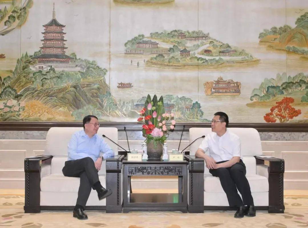 陳國(guó)基(左)與浙江省副省長(zhǎng)盧山(右)會(huì)面,就深化浙江省和香港合作交換意見(jiàn)