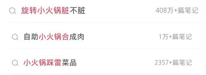 在大眾點評平臺上,多家旋轉小火鍋的評分在4分左右,連4.5分以上的店鋪都少見;在小紅書上,關于“旋轉小火鍋臟不臟”的話題下有高達408萬+篇筆記,“小火鍋踩雷菜品”“小火鍋合成肉”的話題下有近2萬篇筆記。