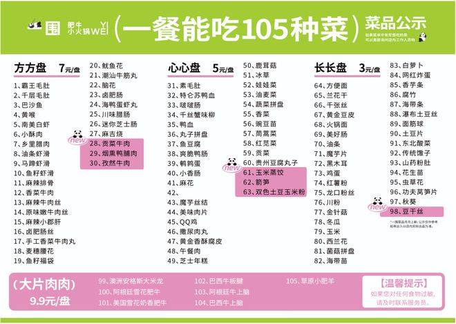 不同于呷哺的套餐制售賣形式,一圍給顧客提供了105道菜,讓顧客有充分的菜品選擇權。