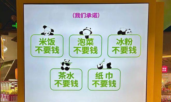 并且,一圍的米飯、冰粉、泡菜、茶水、紙巾通通都免費,沒有任何隱形消費,主打一個讓顧客暢吃。
