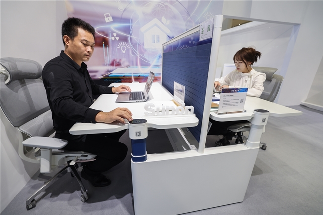 這款具有升降功能的UP7,由圣奧公司自主研發。“開發的初衷就是希望解決職場人士的‘久坐成疾’問題,為人們提供一種健康的辦公方式。”據圣奧科技研發負責人張敘俊介紹,該產品還可以通過LORA物聯網技術實現工位管理。客戶在購置辦公工位時,不再按以往數人頭的方式購買,而是按需購買,實現辦公資源的最優化。