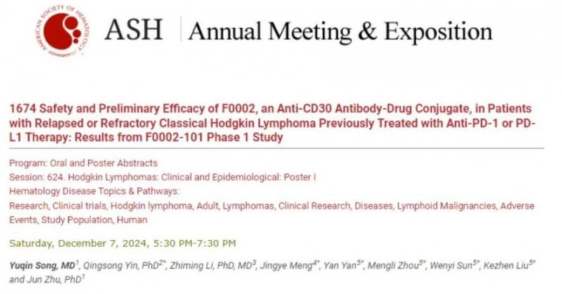 該項(xiàng)目主研復(fù)發(fā)/難治性CD30陽(yáng)性淋巴瘤的治療,其I期臨床研究結(jié)果在第66屆美國(guó)血液年會(huì)中披露。該項(xiàng)目入組的中位既往治療線數(shù)為5線,其在43名療效可評(píng)估的受試者中,ORR為30.2%,DCR為74.4%;3.0mg/kg組受試者的ORR為40%,DCR為80%,且達(dá)到完全緩解的2例3.0mg/kg受試者緩解持續(xù)時(shí)間分別為12.45個(gè)月及14.95個(gè)月;無(wú)進(jìn)展生存期分別為13.80個(gè)月及16.10個(gè)月。可見(jiàn)抗CD30抗體偶聯(lián)DM1藥物在經(jīng)典霍奇金淋巴瘤的受試者中安全性耐受良好,且對(duì)既往接受過(guò)PD-1/PD-L1免疫治療的受試者亦有顯著抗腫瘤療效。