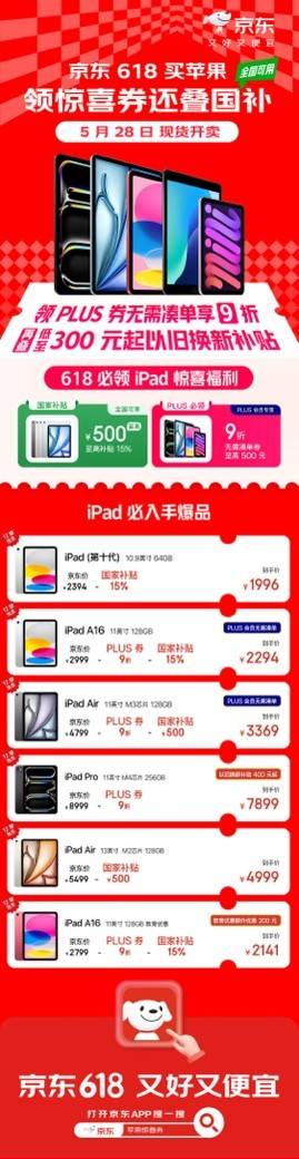 真正的618,從5月30日晚8點開啟!無論你是想入手iPhone、iPad還是Mac,在京東都有心動的價格。想要快速入手的果粉們,記得每晚8點打開京東搜索“蘋果驚喜券”在活動會場搶1200元以舊換新券,千萬別錯過。
