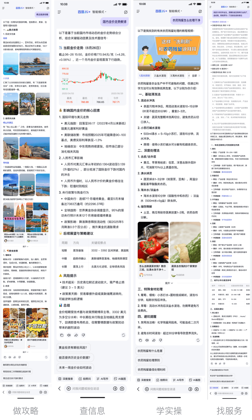 「AI助手」此次也迎來重大能力升級(jí)。首先是加入視頻通話,并增強(qiáng)語(yǔ)音、圖片和文件等多模態(tài)輸入的能力。其次是豐富了多媒體輸出能力,全面支持圖片、視頻、筆記等內(nèi)容的混合排版,同時(shí)可根據(jù)用戶的習(xí)慣和偏好智能調(diào)整輸出結(jié)果。第三是一站式工作臺(tái)能力實(shí)現(xiàn)「智能創(chuàng)作、實(shí)時(shí)編輯、異步交付、一鍵存儲(chǔ)」的一體化能力。第四是強(qiáng)化了深度搜索(Deep Search)能力,能夠模擬人類處理信息「感知-規(guī)劃-執(zhí)行-生成」的全流程,通過思維鏈多級(jí)推理,結(jié)合大模型多階段自主反思能力,為用戶提供更全面更多維的答案。